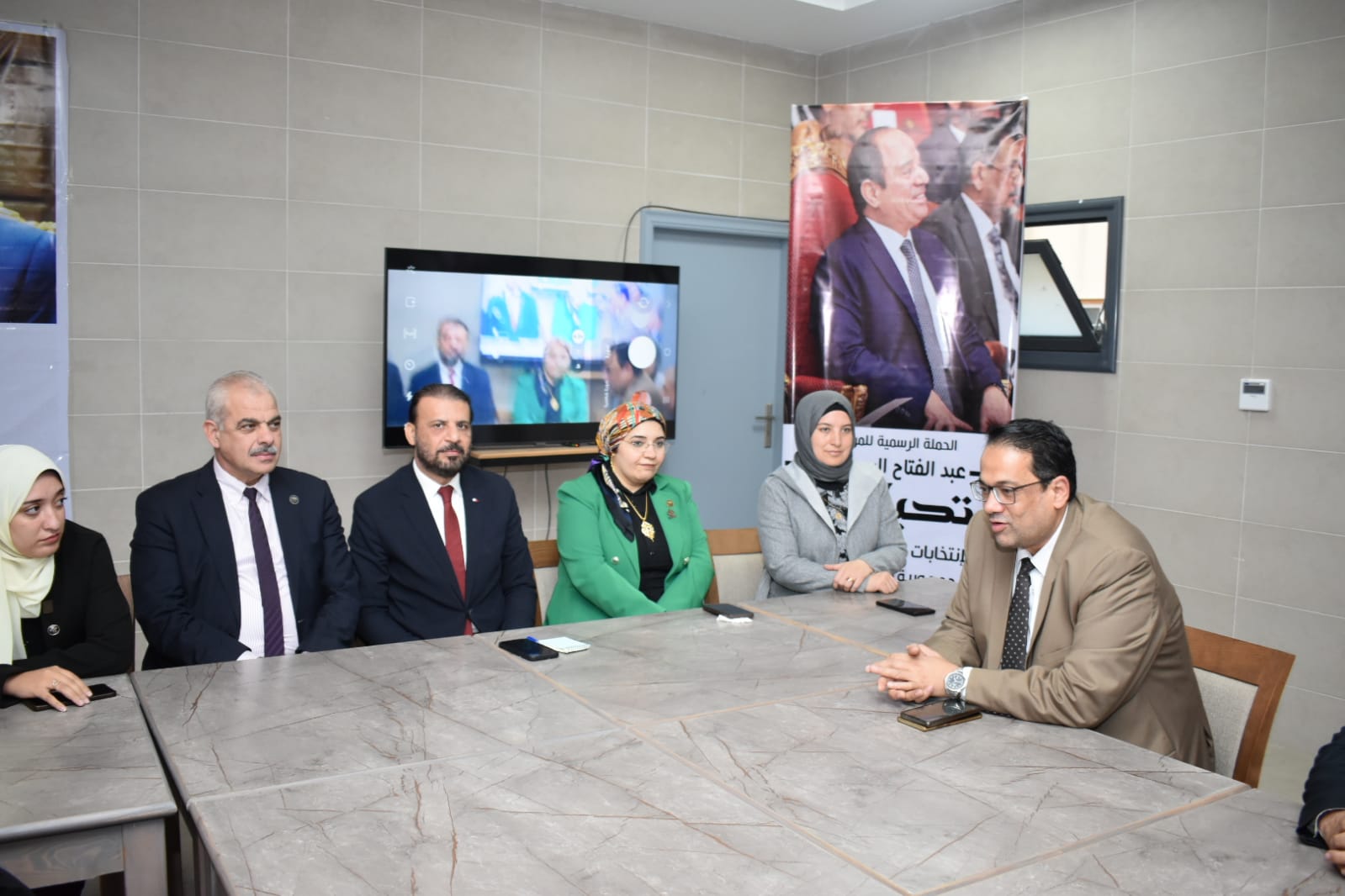 ورحب أعضاء حملة المرشح الرئاسي عبد الفتاح السيسي بوفد مديرية التربية والتعليم والذي أكد خلال اللقاء ضرورة المشاركة الإيجابية في الانتخابات الرئاسية المقبلة، وحث المعلمين على النزول إلى صناديق الاقتراع، ودعم وتأييد الرئيس عبد الفتاح السيسي لفترة رئاسية جديدة، ودعم قرارات الرئيس السيسي لاستكمال بناء الجمهورية الجديدة، القائمة على حياة كريمة لكل المصريين.