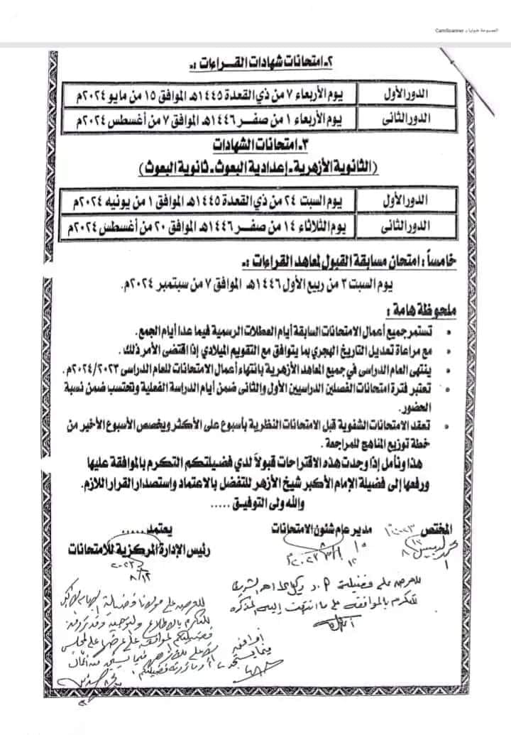 - تبدأ امتحانات الدور الثاني لطلاب الأزهر الشريف بداية من يوم السبت 20 يوليو 2024 الموافق 13 محرم 1446 هجريًا.