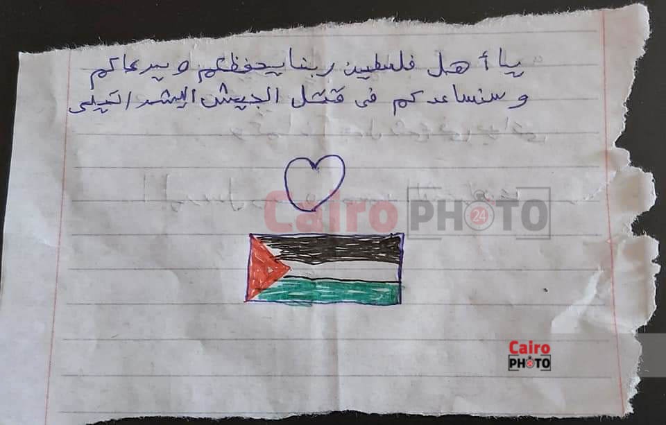 خطابات دعم بخط اليد من أطفال المنوفية لأشقائهم في غزة