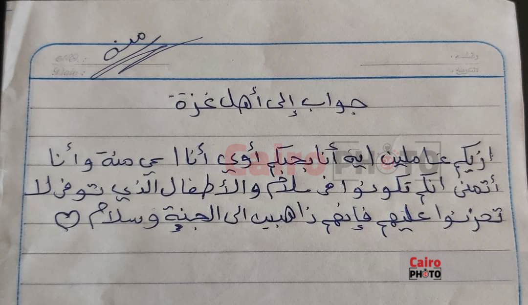 تفاصيل خطابات دعم بخط اليد من أطفال المنوفية لأشقائهم في غزة