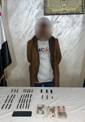 وفي مديرية أمن المنوفية ضبط عاطل له معلومات جنائية مقيم بدائرة قسم شرطة شبين الكوم، وبحوزته كمية لمخدر الحشيش وفرد محلي وطلقة ومبلغ مالي متحصلات بيع المواد المخدرة.