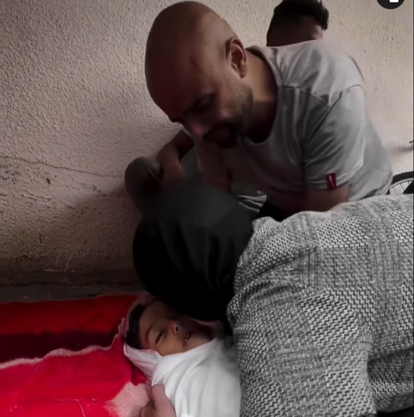 انتشر مقطع فيديو عبر موقع التواصل الاجتماعي فيسبوك، وظهرت فيه بالدموع والقهر أم فلسطينية في حالة من الهلع، تصرخ وتبكي وهي تودع طفلها الذي استشهد على يد قوات الاحتلال الإسرائيلي.