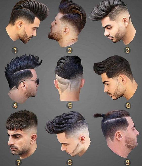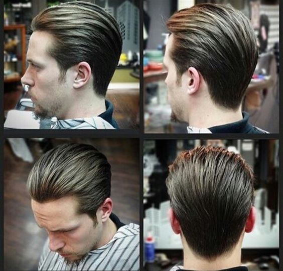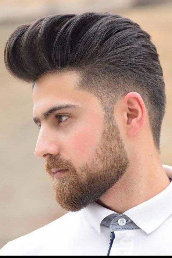 تسريحة شعر Pompadour: قصة شعر قصيرة في الجوانب والأعلى مع شعر طويل في الجزء العلوي يتم رفعه إلى الخلف. تناسب الوجه البيضاوي أو الوجه المربع.