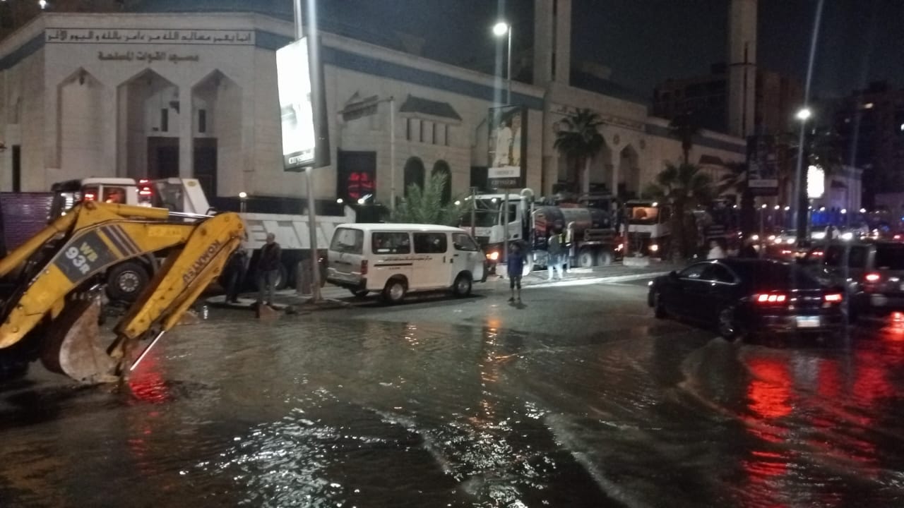 كسر ماسورة مياه أمام سيتي ستارز في مدينة نصر