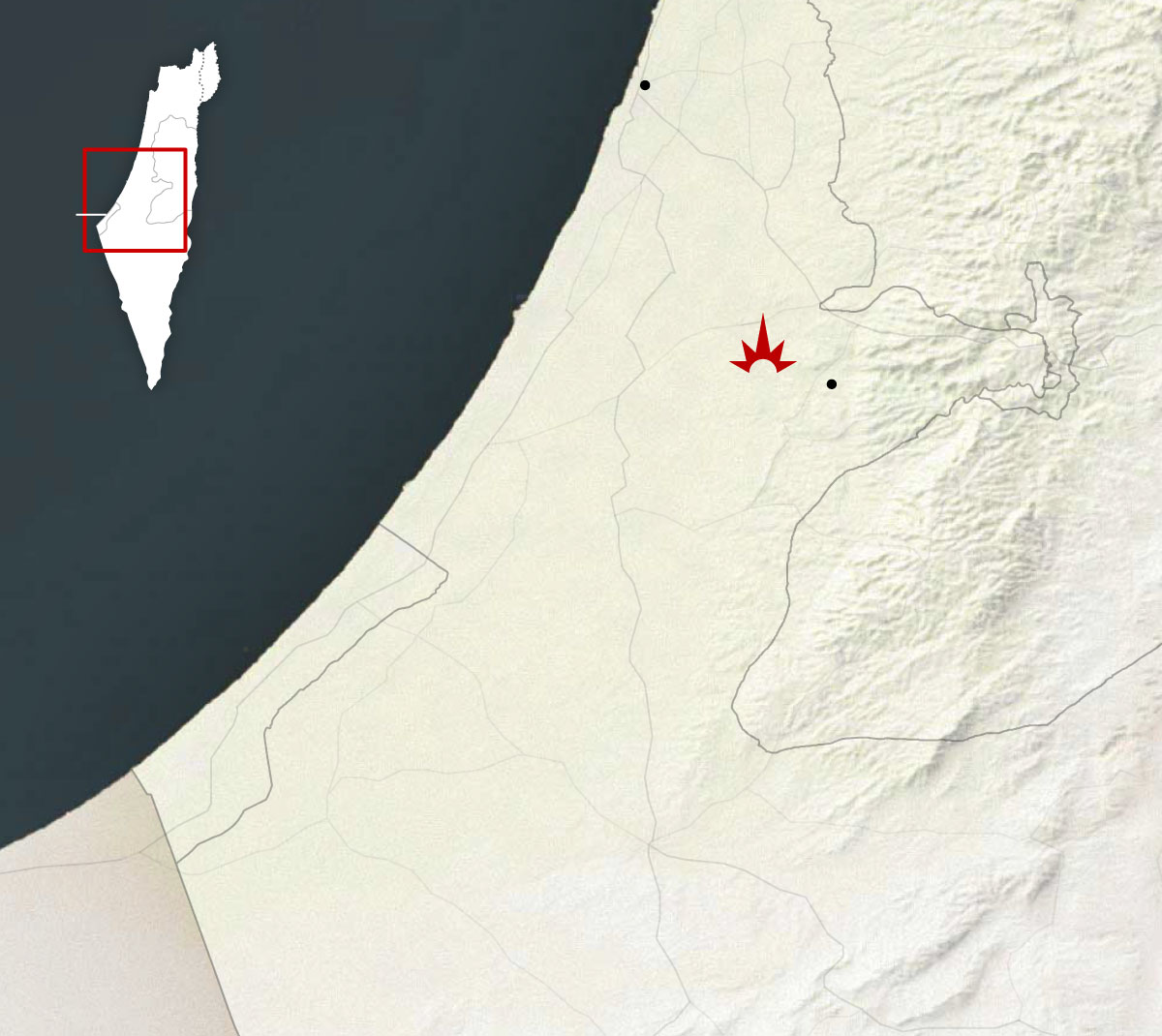 وبحسب الصحيفة، سقط الصاروخ داخل حدود القاعدة، الواقعة على بعد 40 كيلومتر شمال شرق غزة و24 كيلومتر غرب القدس، حوالي الساعة 10 صباحا، وسقط في واد صغير مجاور لمنشأة صواريخ في أريحا، ونظام رادار كبير وبطارية دفاع جوي، وسرعان ما أدى الانفجار إلى اندلاع حريق في النباتات الكثيفة والجافة.