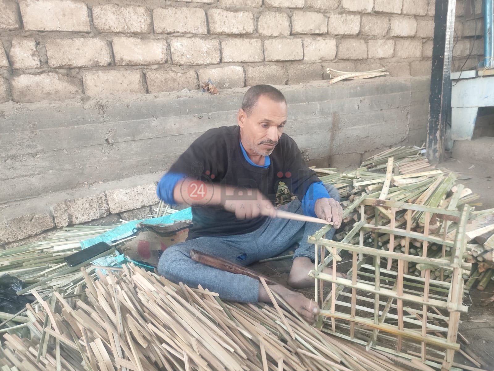 الرزق يحب الخفية.. العم سيد يتنقل بين المحافظات لصناعة أقفاص الجريد: بشتغلها من 40 سنة وربيت منها 5 أبناء