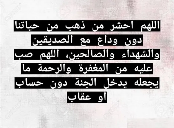 | اللهم ارحم زوجي الغالي، اللهم أطعم زوجي من ثمار الجنة واجعل من نهر الكوثر شرابه |