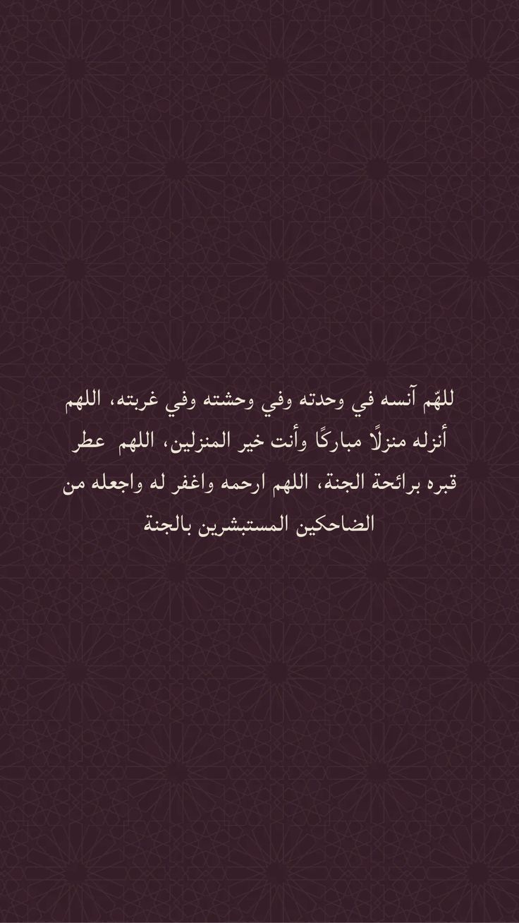 | اللهم كن أنيسه في وحدته وأرحم غربته واغفر زلته وأمن روعته يا أرحم الراحمين |