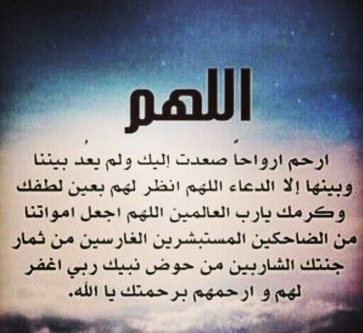| اللهم أفسح له في قبره مد بصره وأفرش قبره من فراش الجنة |