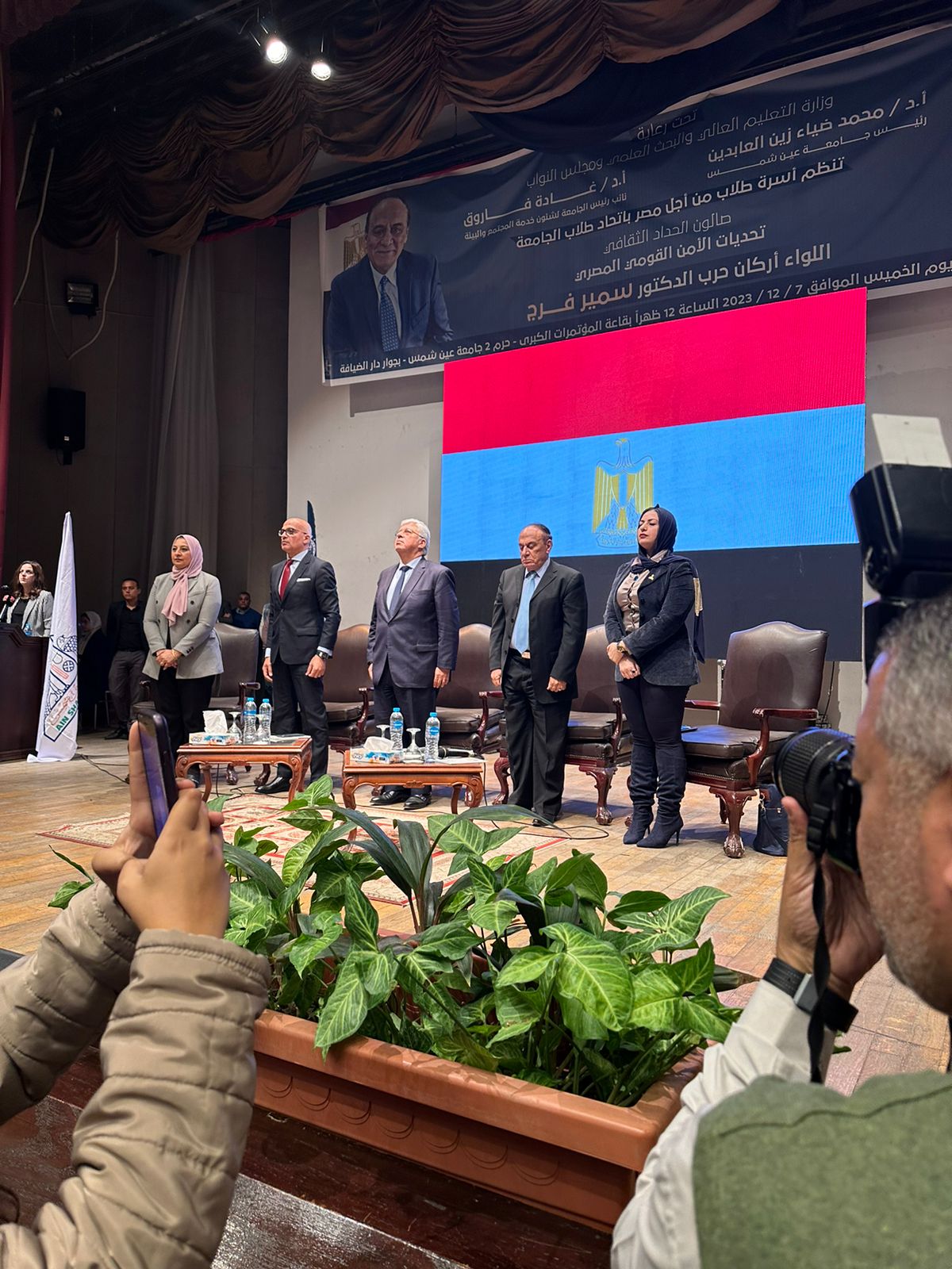 وتنظم الفعالية في إطار الدور التثقيفي لـ أسرة طلاب من أجل مصر باتحاد طلاب الجامعة، تنظم الأسرة صالون الحداد الثقافي تحت شعار تحديات الامن القومي المصري.