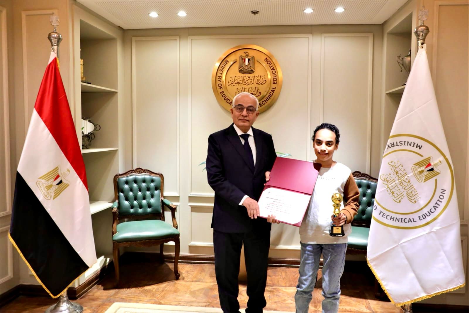 وزير التعليم يكرم الطالبين الحاصلين على المركز الـ3 عالميا في مسابقة ucmas الدولية