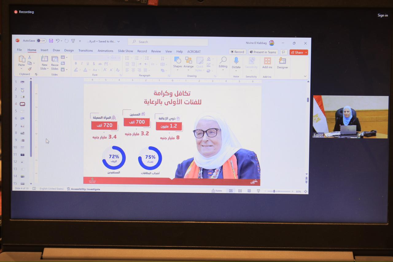 وحول برنامج الدعم النقدي المشروط تكافل وكرامة، أكدت القباج أن البرنامج شهد نقلة نوعية، حيث بلغ عدد المواطنين المستفيدين ما يقرب من 22 مليون مواطن مقابل 6.5 مليون مواطن عام 2014، كما ارتفعت نسبة تمويل البرامج من موازنة الدعم الحكومي الى 36 مليار جنيه مقابل 3.7 مليار جنيه في البداية، مما أدى لخفض درجة الفقر للأسر جراء الدعم النقدي 8 درجات مئوية مع التركيز على المناطق الأكثر فقرا، موضحة أن نسبة السيدات بالبرنامج تمثل 75% يملكن بطاقات ميزة.
