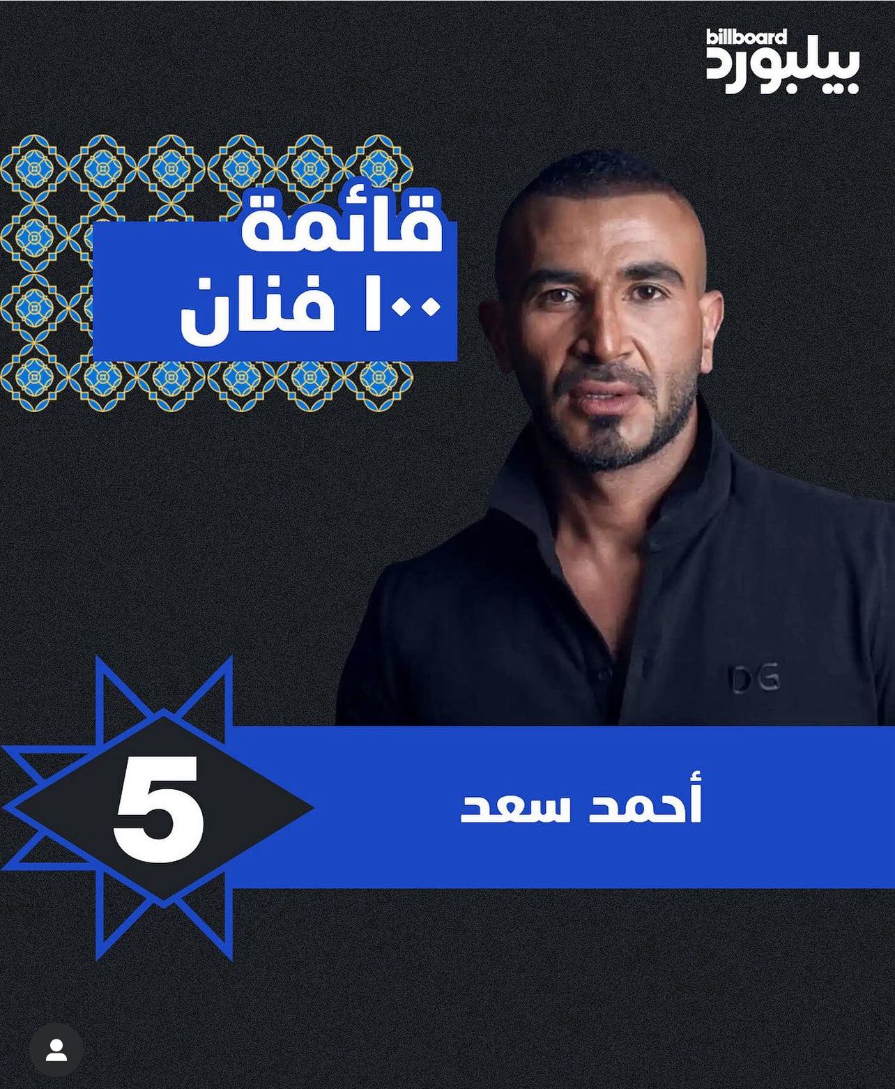 كما جاء الفنان أحمد سعد في المرتبة الخامسة في هذه القائمة، والمطربة اللبنانية نانسي عجرم تاليه في المرتبة السادسة.