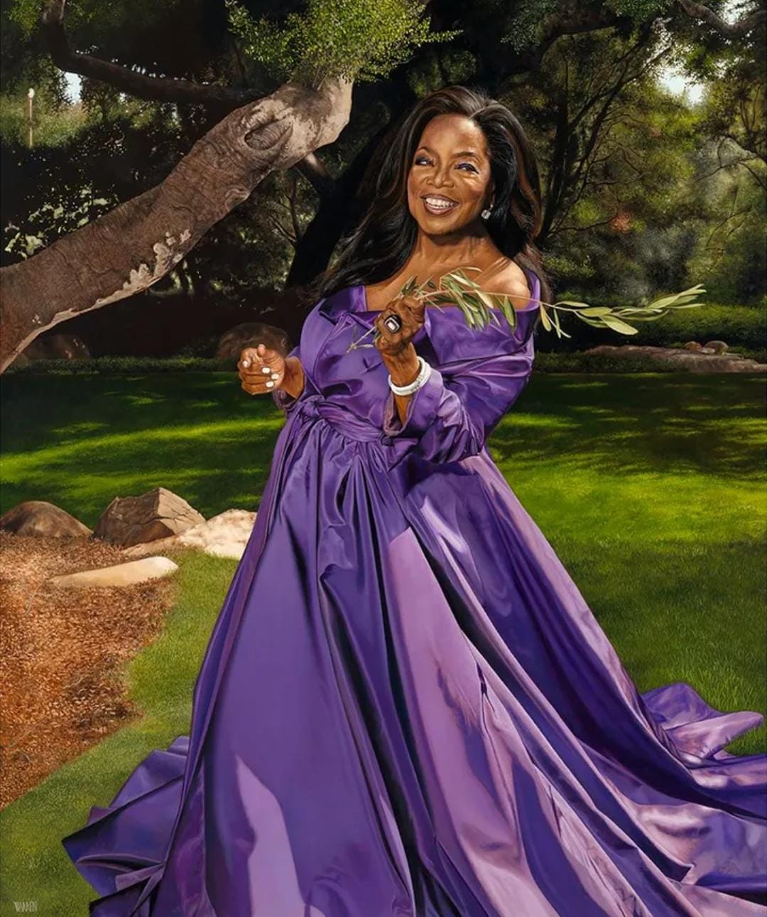 نشرت شبكة بي بي سي لوحة فنية للإعلامية الأمريكية أوبرا وينفري، مرتدية فستانًا باللون البنفسجي ممكسة بغصن زيتون.