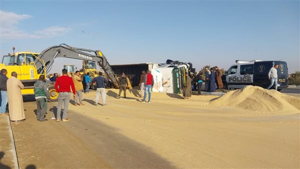 كانت الأجهزة الأمنية بمحافظة السويس، تلقت بلاغًا بوقوع حادث تصادم بين سيارة نقل وأخرى ملاكي، تسبب في انقلاب السيارة النقل المحملة بالرمال وتحطم السيارة الملاكي.
