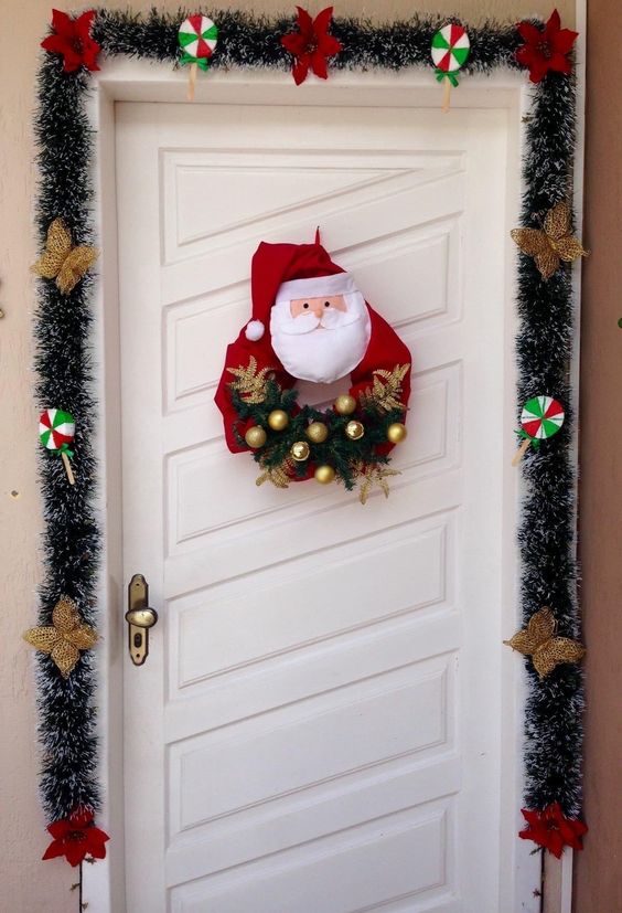 | يمكن وضع الزهور الدائرية على باب غرفة الأطفال أو ملصقات بابا نويل. |