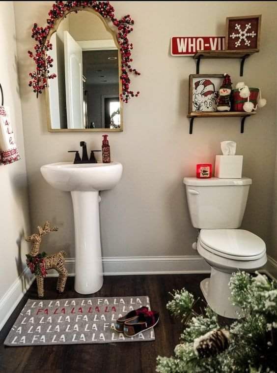 ونقدم مجموعة من ابتكارات ديكور رأس السنة في الحمام، حيث يمكن بأشياء بسيطة للغاية تزين الحمام بحيث يكون ملائم مع كل ديكورات المنزل، ومن ضمن الوسائل التي تستخدم في تزين الحمام ما يلي: