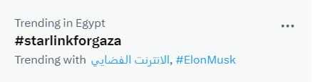 تصدر هاشتاج ستارلينك #starlinkforgaza ترند على موقع إكس أو تويتر سابقًا، بسبب مطالبات مستخدمي وسائل التواصل الاجتماعي إيلون ماسك بتوفير خدمة إنترنت فضائية لقطاع غزة، بعد أن قطع الاحتلال الإنترنت على القطاع بأكمله.
