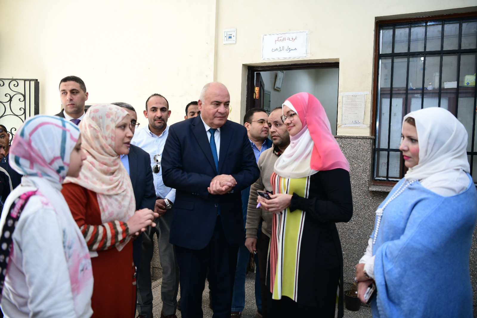 محافظ قنا يصطحب سيدة لفرع التأمين الصحي