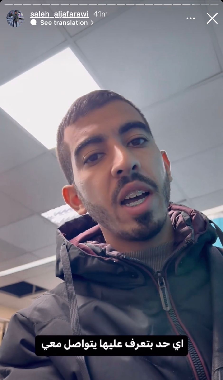 استغاثة جديدة لأحد أبطال غزة، نشرها صالح الجفراوي الصحفي الفلسطيني، طلب فيها عبر استوري من حسابه الرسمي على إنستجرام، بنجدة طفلة مجهولة الهوية، من ذوي الاحتياجات الخاصة، موجودة بأحد المستشفيات الفلسطينية بلا أهل أو جيران.