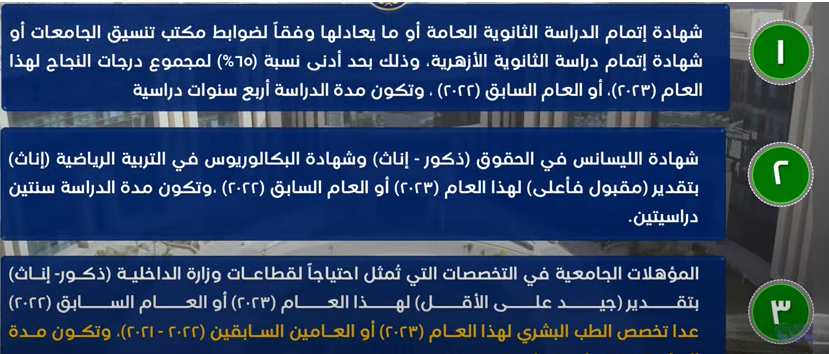 - الحاصلون على شهادة الليسانس في الحقوق، وبكالوريوس التربية الرياضية لهذا العام 2023
