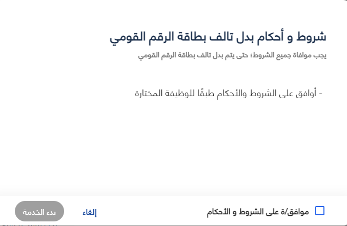 - قراءة الشروط المبينة لإجراء الخدمة والضغط على موافق.
