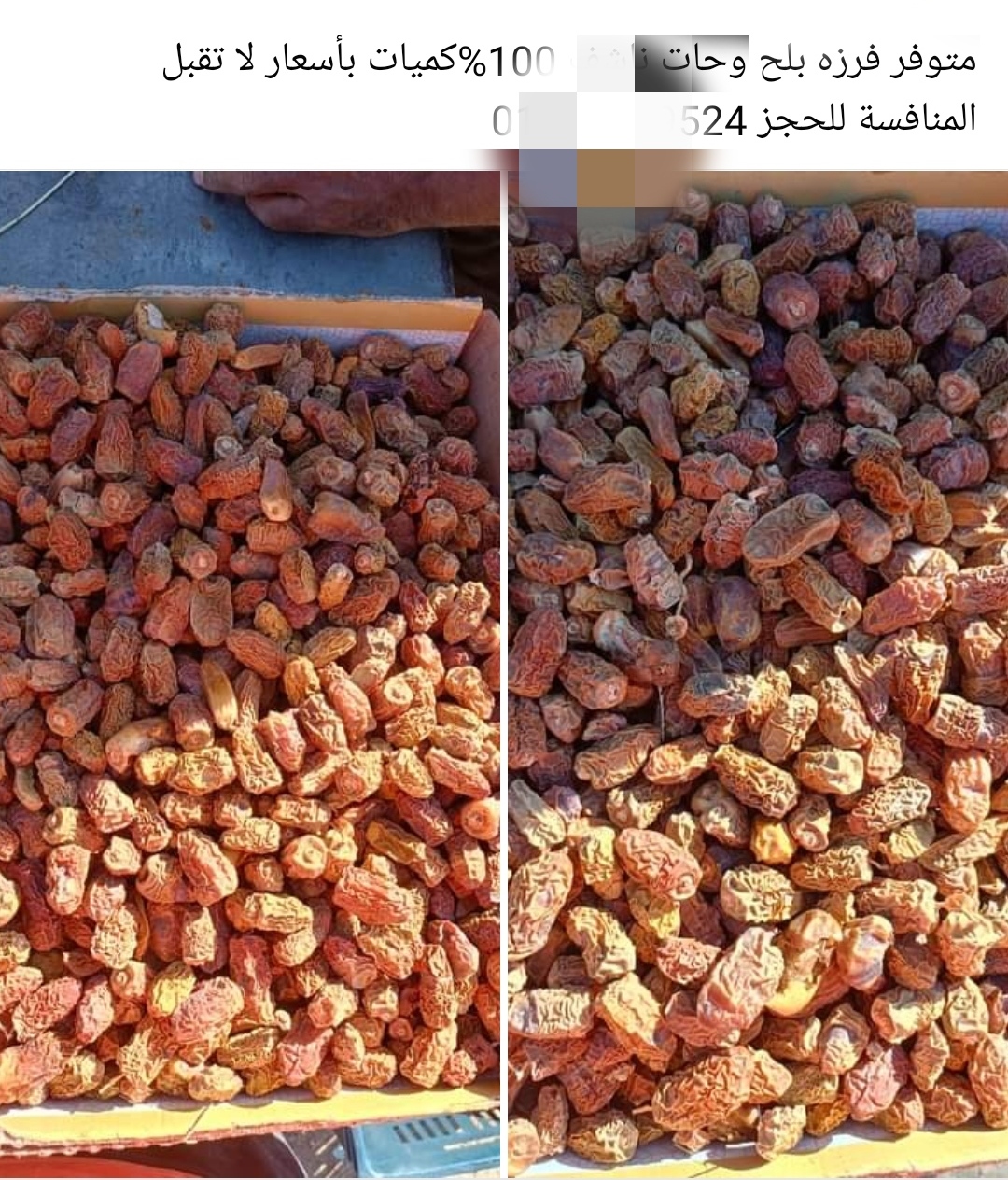 وأوضحت المسؤولة عن الصفحة لـ القاهرة 24، أن هناك كميات من البلح الناشف تم طرحها من قبل لتكون من ضمن أكل المواشي، والبسكويت بالعجوة، ويكون ذلك من هوالك المصانع وغير ضار بالمواشي، ويستخدمه الفلاحين بنسب مع العجول، نظرا لغلاء أسعار العلف وارتفاع تكلفة التربية بشكل كبير.