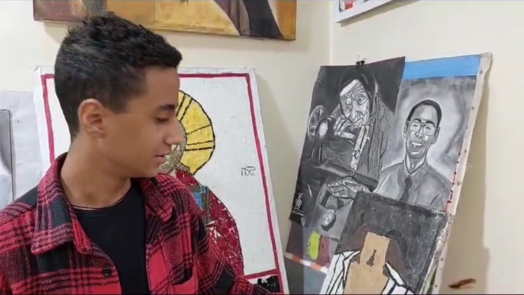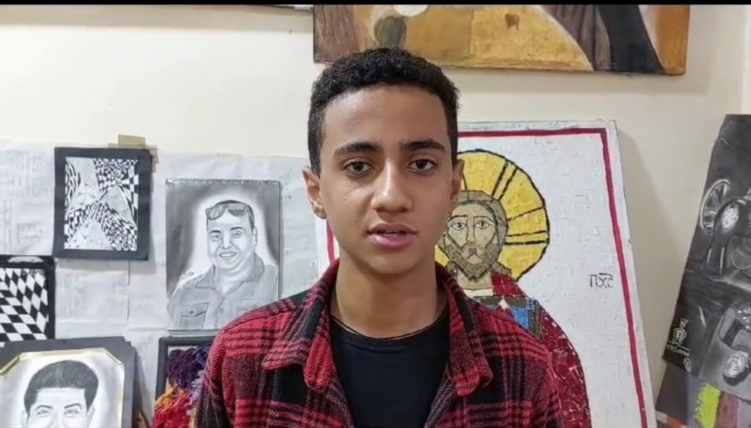 أبدع في الرسم.. طالب ثانوي يحول غرفة نومه لمعرض فني بسوهاج | صور وفيديو