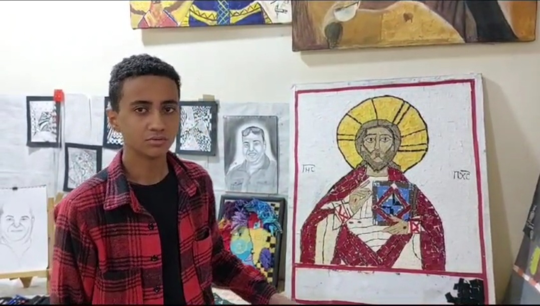 طالب ثانوي يحول غرفة نومه لمعرض فني بسوهاج