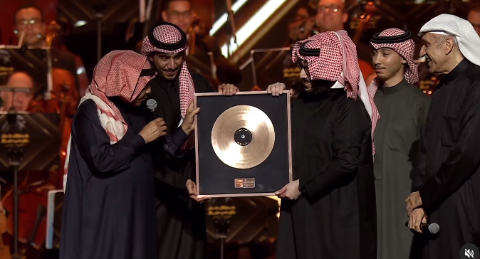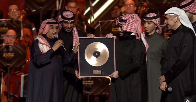 أبرز لقطات حفل تكريم محمد عبده.. تبرع لأهل غزة بجائزة ذهب وحضور مغنية عالمية