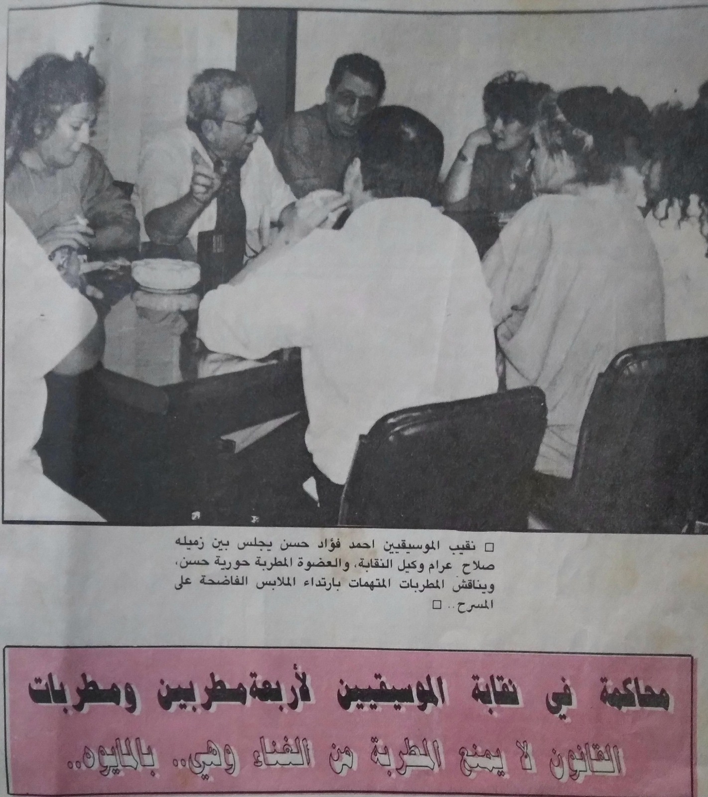 وليست هذه هي الأزمة الوحيدة، التي مرت بها النقابة في الزمن الجميل، ففي عام 1991 قررت النقابة منع 16 مطربًا من الغناء في مصر، بسبب مخالفتهم لنظام النقابة، وقد تم التحقيق مع مطربات اتهمن بارتداء ملابس فاضحة على خشبة المسرح، الأمر الذي لم تتقبله النقابة، وعلى الفور تم تحويلهن للتحقيق.