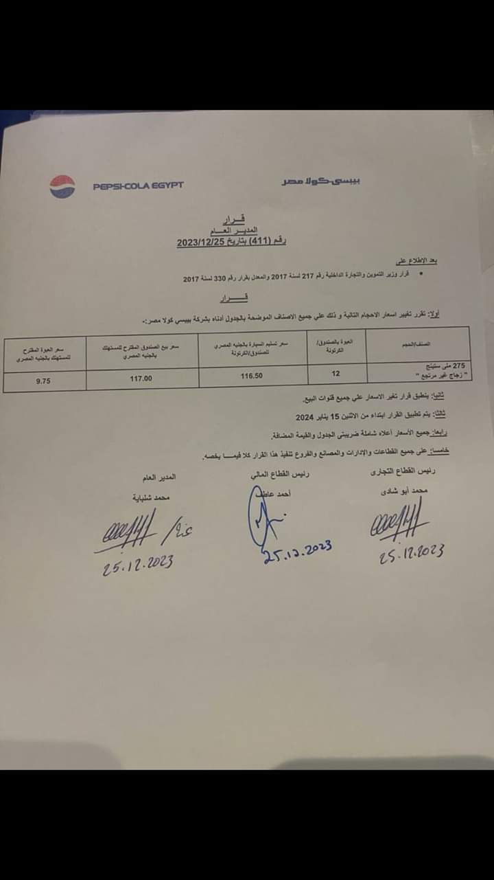 وبحسب إخطار شركة بيبسي التابعة لمجموعة بيبسيكو العالمية، اطلع عليه القاهرة 24، ارتفع سعر مشروب ستينج إلى 9.75 جنيه بدلا من 7.75 جنيها.