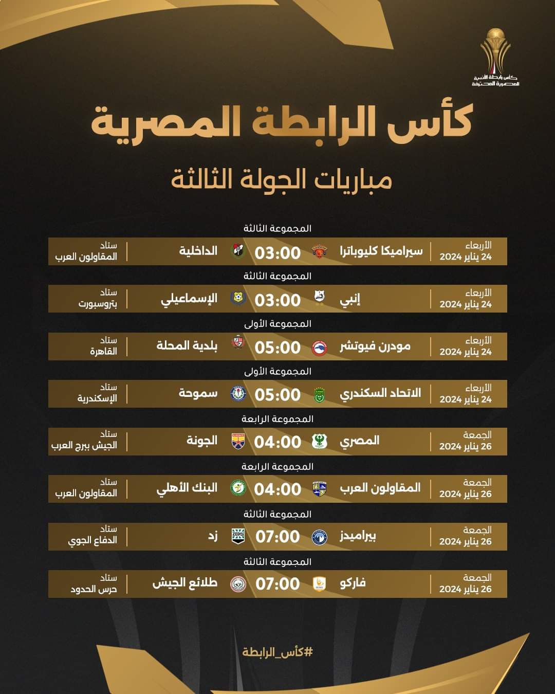 المجموعة الثالثة: سيراميكا كليوباترا، إنبي، الإسماعيلي، الداخلية