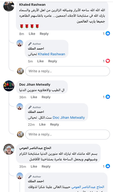 والتقى الخطيب آل الطيب، الشيخ أحمد محمد الطيب والشيخ المهندس محمود أحمد الطيب، والمهندس أسامة محمد الطيب، والمستشار محمود محمد الطيب وباقي أبناء الشيخ الطيب ملتقطًا الصور التذكارية معهم، والذين رحبوا به حاملين أعلام النادي الأهلي وارتدى صغارهم قمصان النادي الأهلي.