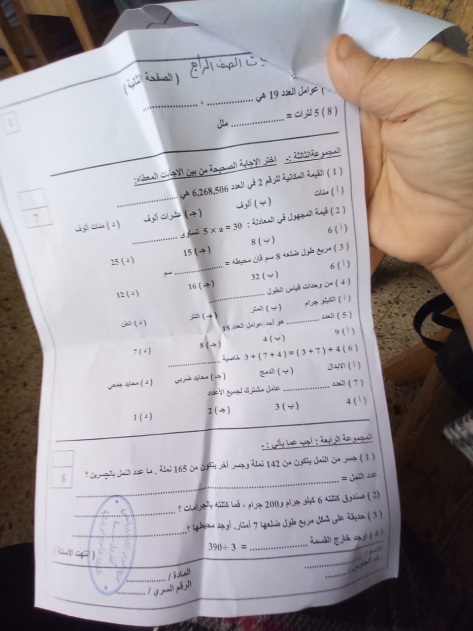 تداول امتحان الرياضيات للصف الرابع الابتدائي على مواقع التواصل الاجتماعي