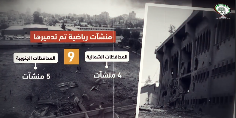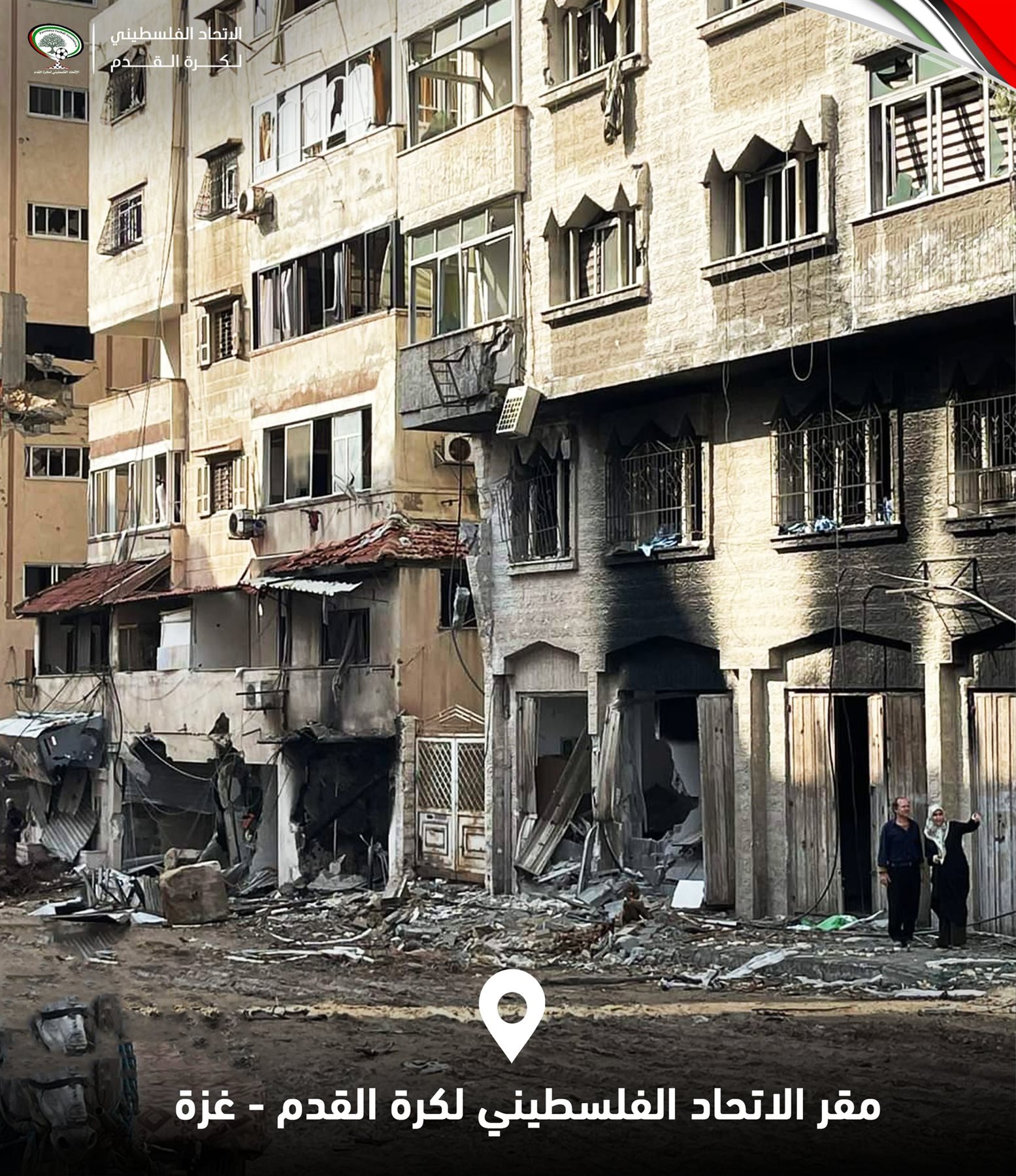 وبجانب تدمير مبنى اتحاد الكرة الفلسطيني في قطاع غزة ومقر اللجنة الأولمبية الفلسطينية، فإن حساب الاتحاد الفلسطيني لكرة القدم، أعلن في وقت سابق، تدمير 9 منشآت رياضية منها 4 منشآت في محافظات الشمال، و5 منها في محافظات الجنوب.