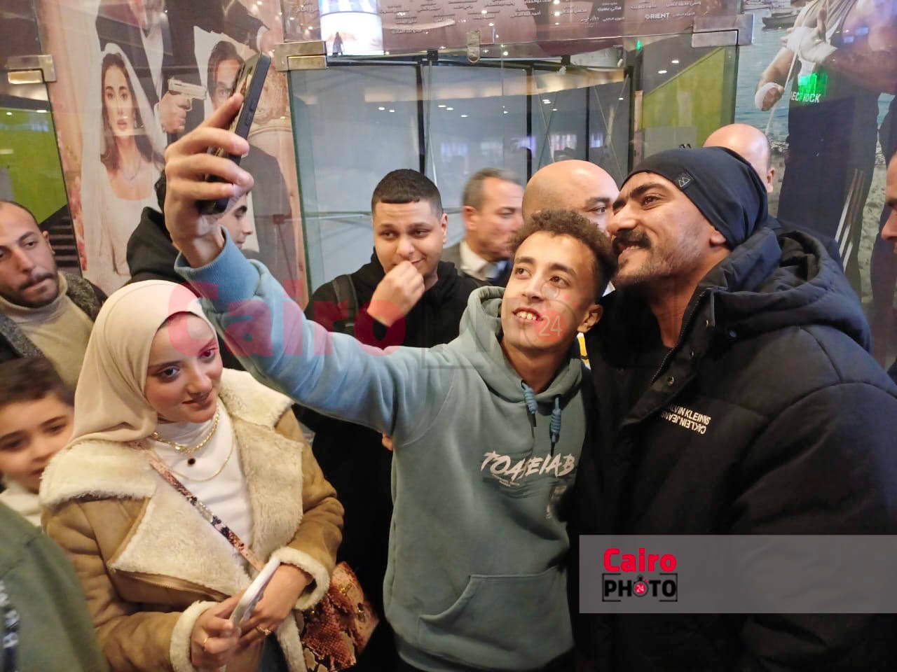 وتزاحم الجمهور حول أحمد العوضي، لالتقاط الصور التذكارية، بعدما حرص على مشاهدته فيلمه الجديد الإسكندراني برفقتهم.