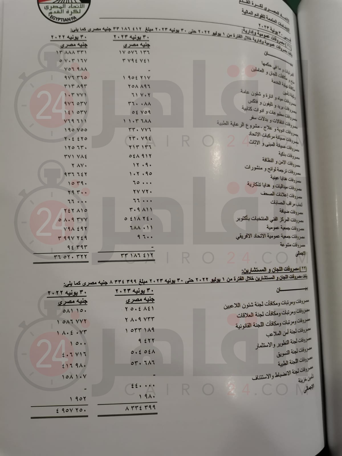 تفاصيل المصروفات الإدارية لـ اتحاد الكرة