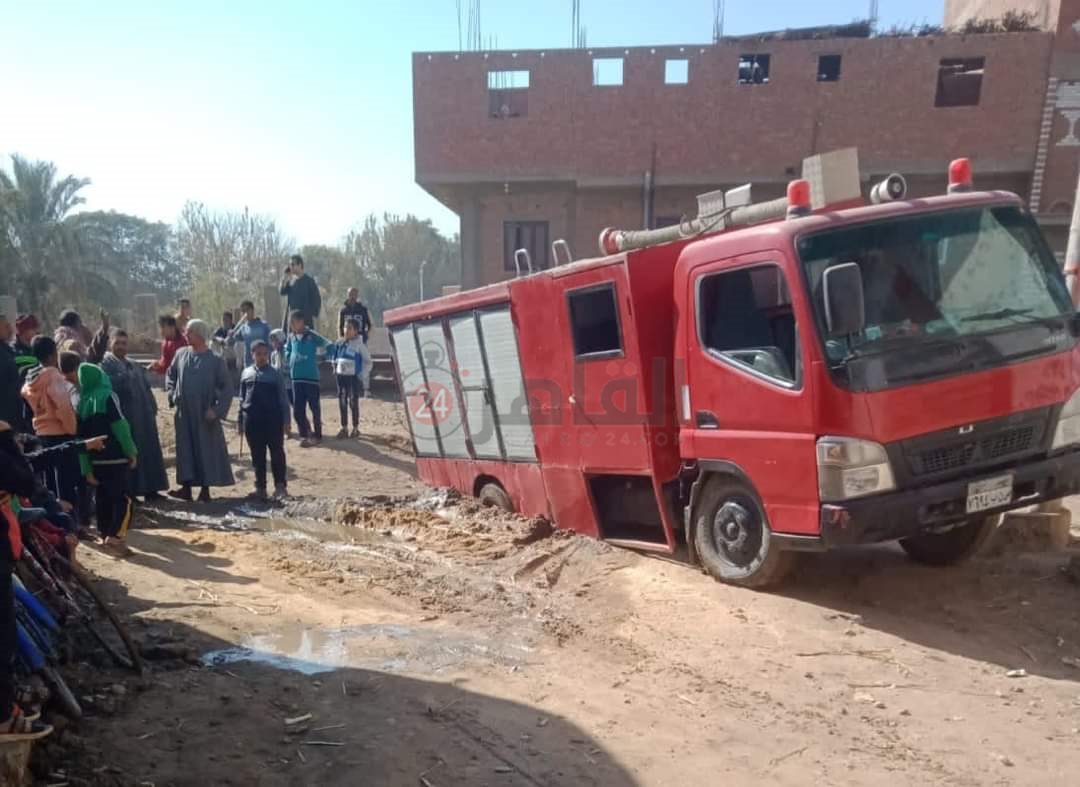 رايحة تطفي حريقة.. سقوط سيارة مطافي داخل حفرة صرف صحي بقنا
