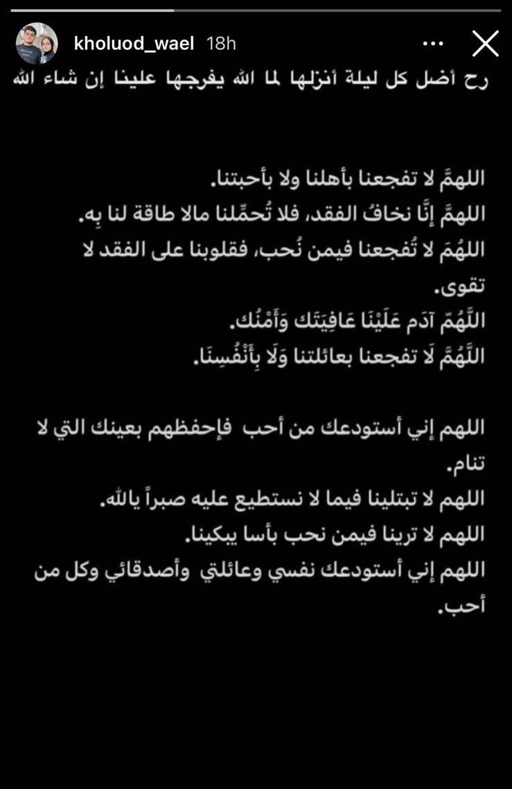 «اللهم لا تفجعنا بأهلنا ولا بأحبتنا.. اللهم لا تُفجعنا فيمن نحب فقلوبنا على الفقد لا تقوى»، عزمت خلود وائل الدحدوح على نشر قصة كل ليلة على حسابها بموقع التواصل الاجتماعي انستجرام، والتي تحوي كلمات راجية بها زوال الغمة وحفظ أحبابها من الفقد، لتفجع اليوم الأحد، مرة أخرى باستشهاد أخيها حمزة وائل الدحدوح، إثر قصف إسرائيلي استهدف سيارة صحفيين بخان يونس جنوب قطاع غزة، ليرتقي رفقة الشهيد الصحفي مصطفى ثريا، وذلك عقب استشهاد عدد من أفراد أسرتها في شهر أكتوبر الماضي، جراء غارة جوية من قبل قوات الاحتلال الإسرائيلي.