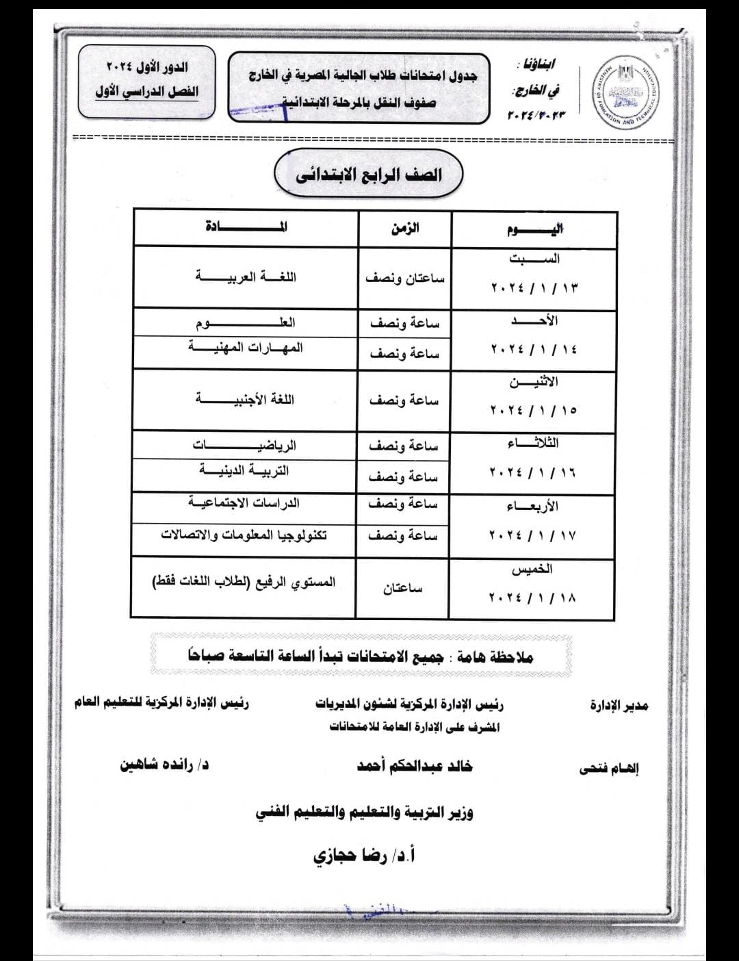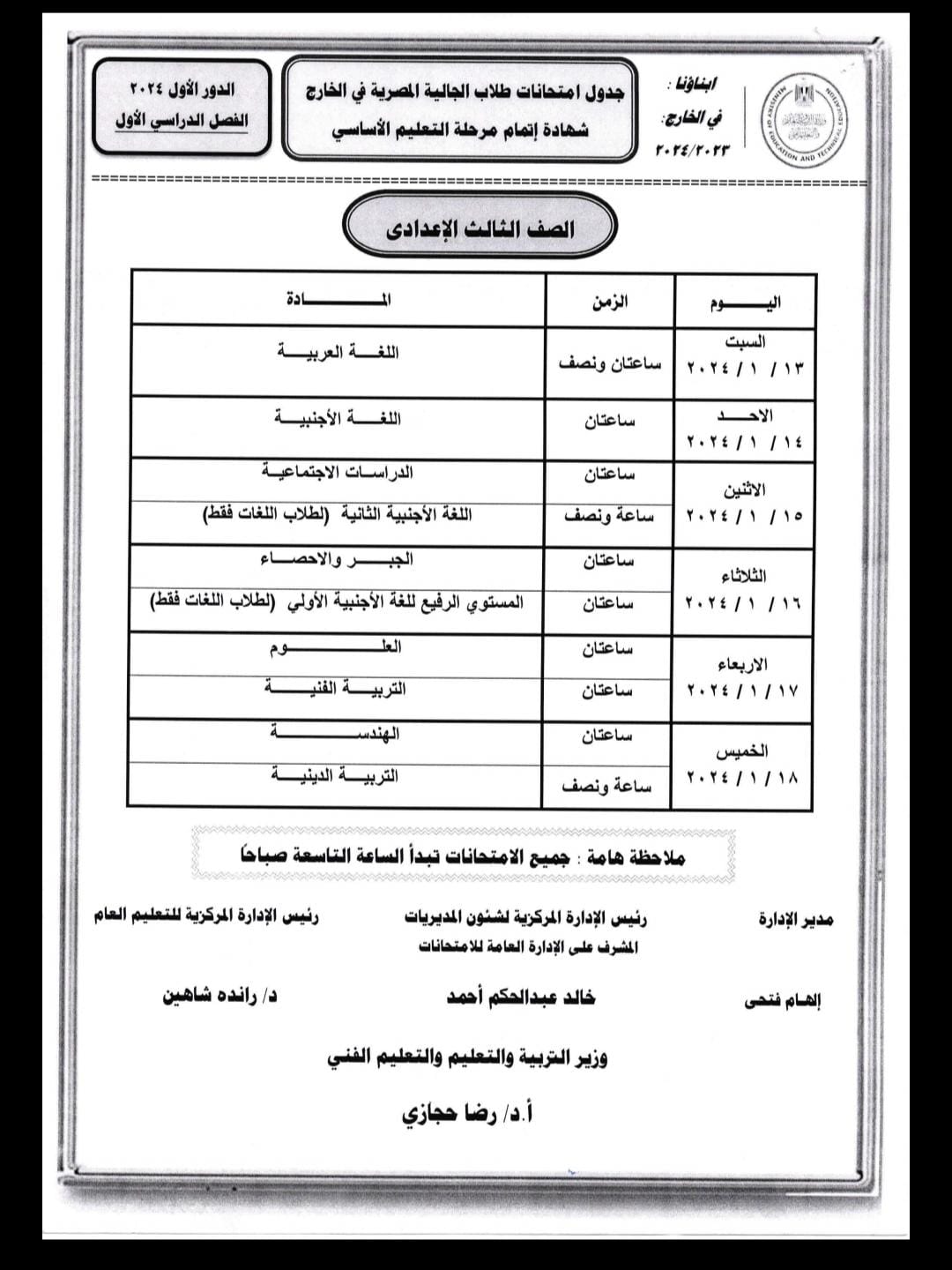 التعليم تعلن جداول امتحانات طلاب الخارج 2024 التيرم الأول