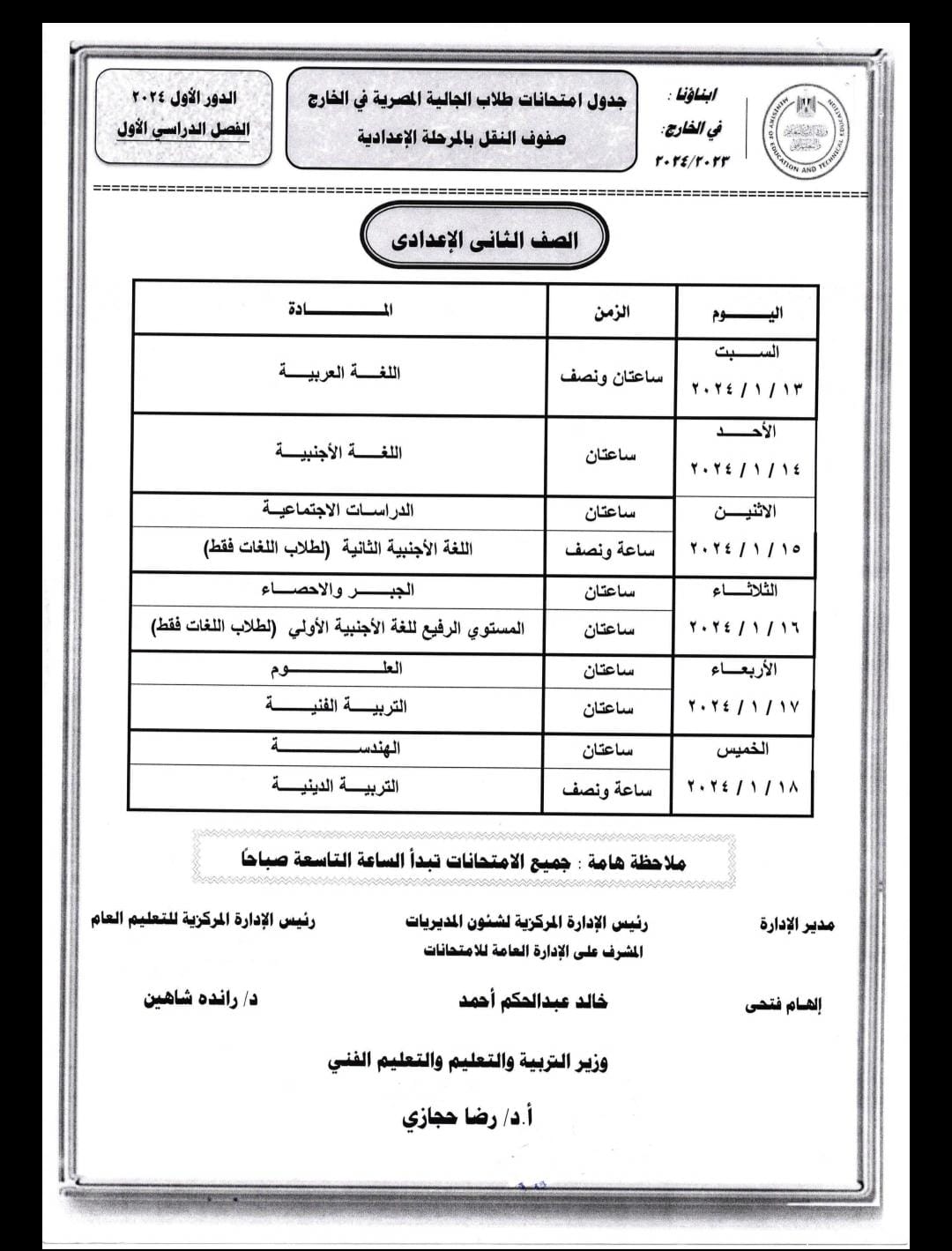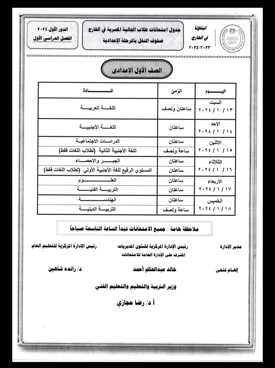 وجاءت جداول امتحانات الفصل الدراسي الأول لطلاب أبناؤنا في الخارج 2024 كالآتي: