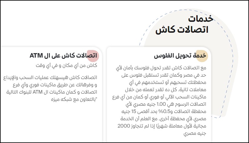 كذلك، فإن رسوم التحويل من اتصالات كاش إلى رقم اتصالات آخر، تبلغ جنيهًا واحدًا فقط، أما إلى الشبكات الأخرى فتحسب بخصم 0.5% بحد ادنى جنيه واحد وبحد أقصى 15 جنيه من قيمة المعاملة ويتم اعتبار أول عملية في الشهر مجانية.