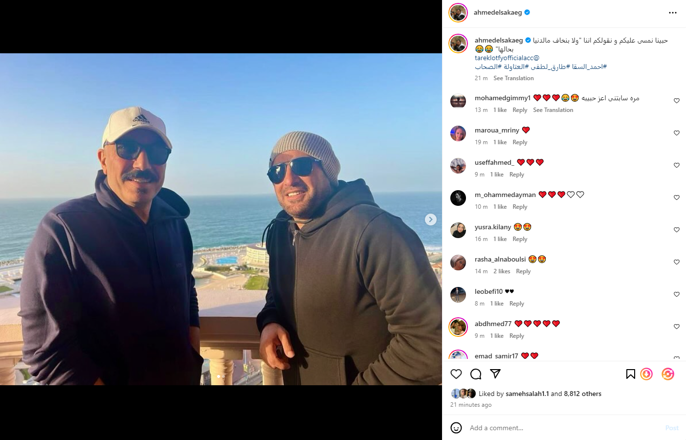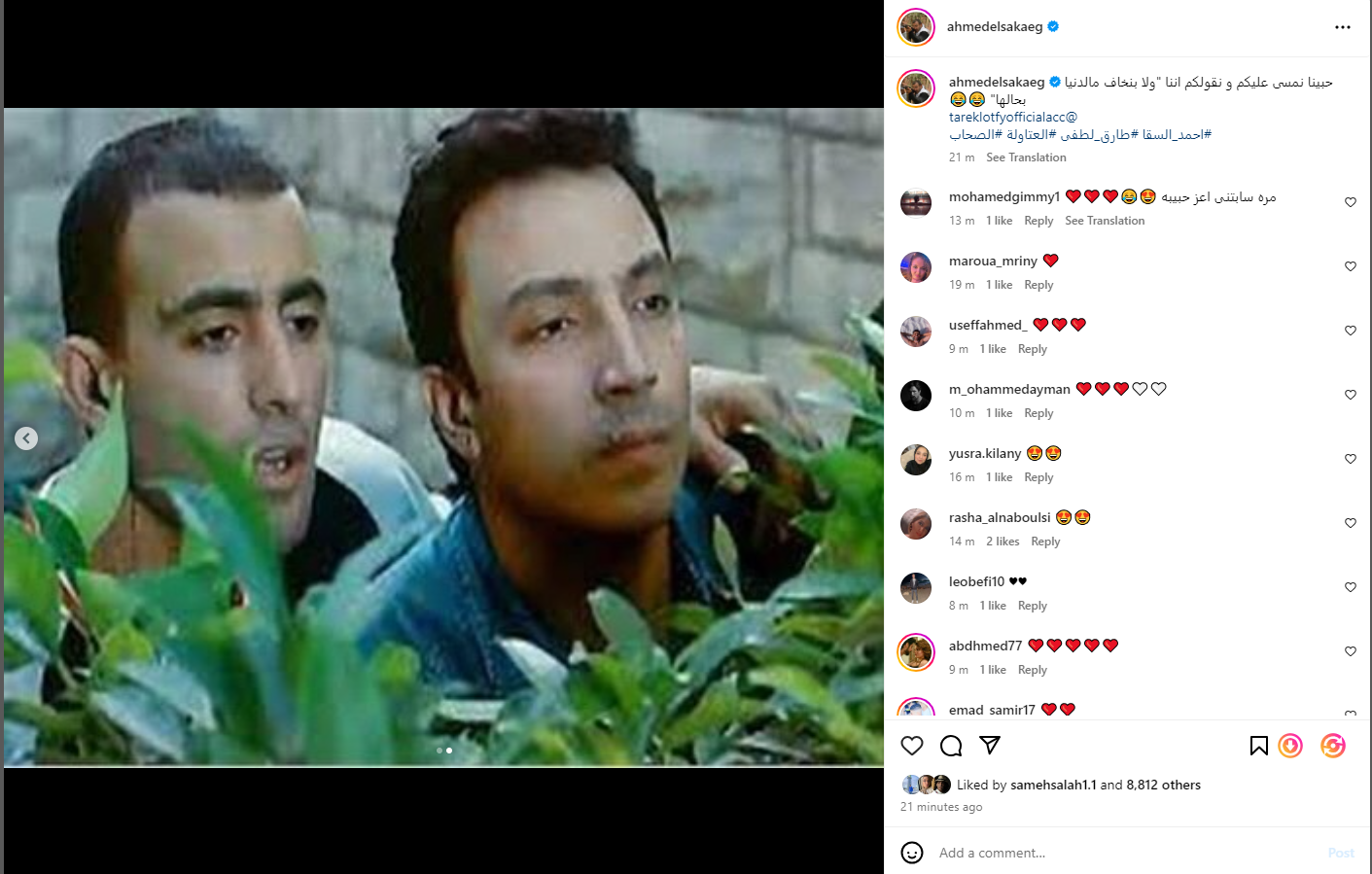 ونشر أحمد السقا، عبر حسابه الشخصي على موقع تبادل الصور والفيديوهات إنستجرام، أول صورة من كواليس تصوير مسلسل العتاولة، والذي يشاركه في دول البطولة الفنان طارق لطفي، ونشر معها صورة أخرى من أحداث فيلم صعيدي في الجامعة الأمريكية، بطولة الفنان محمد هنيدي، والذي عرض عام 1998، وكانت هذه الصورة من مشهدهما أثناء تلقين خلف الجمل التي يلقيها على عبلة - غادة عادل - ليرتبط بها، وعلق السقا عليها: حبينا نمسى عليكم ونقولكم اننا ولا بنخاف من الدنيا بحالها.