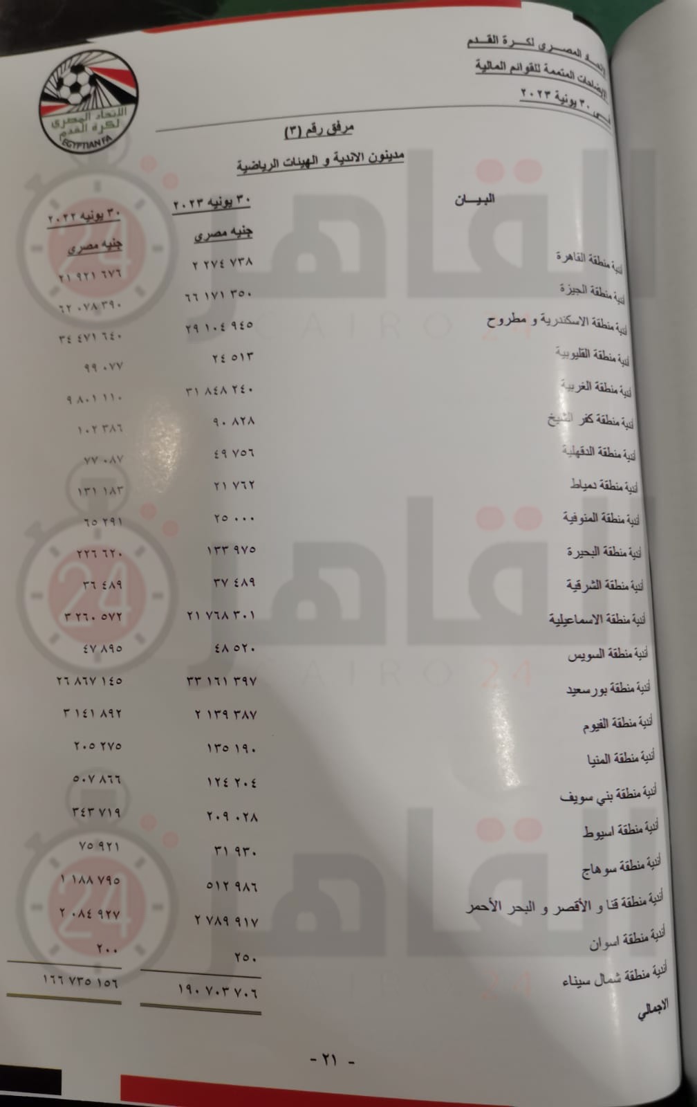 يذكر أن الميزانية والحساب المالي الختامي لـ اتحاد الكرة عن العام المالي الماضي كشفت عن وجود مديونيات مستحقة للجبلاية لدى الأندية تخطت قيمتها 190 مليون جنيه.