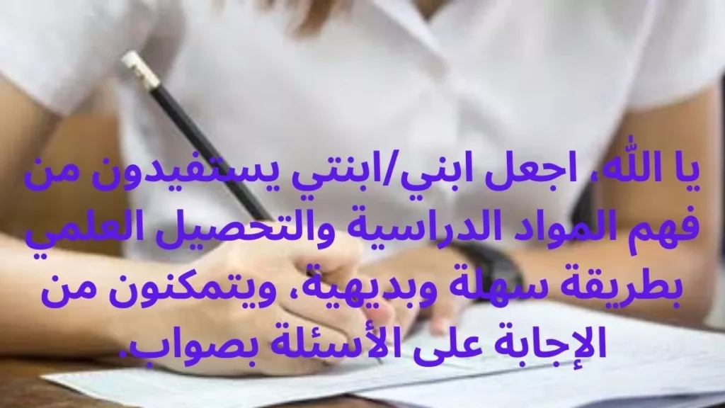 - اللّهُمّّ اجعل امتحاناتهم تتوج بالفوز بعد كل عناء، وارزقهم مستقبلا كله فلاح ونجاح.