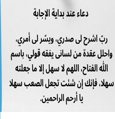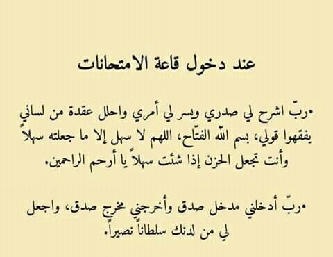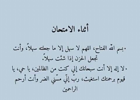 - اللّهُمّّ اجعل الامتحانات بردا وسلاما على قلوب أبنائنا، اللّهُمّّ ذكرهم عند السؤال، وألهمهم الاجابة الصحيحة.