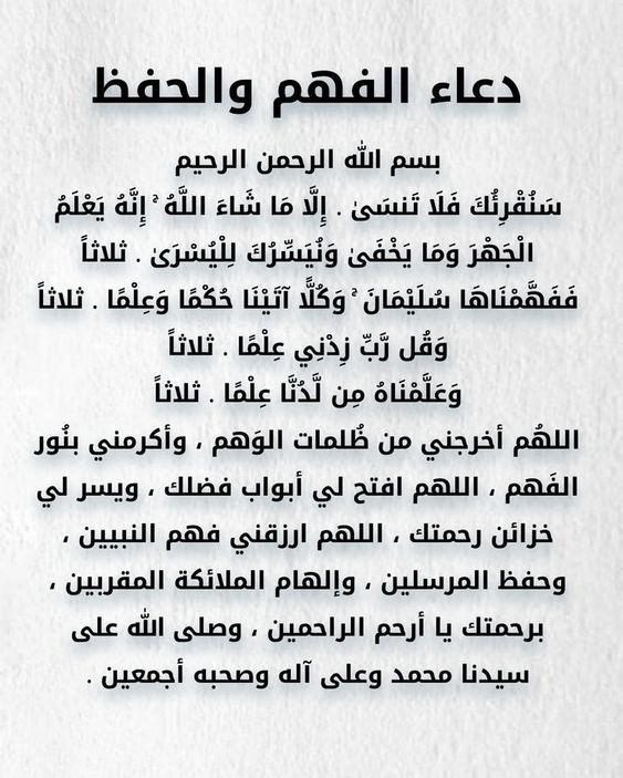 - يارب استودعتك ما قرأ أبنائي وما تعلموا وما حفظوا فرده إليهم حين الحاجة إليه.