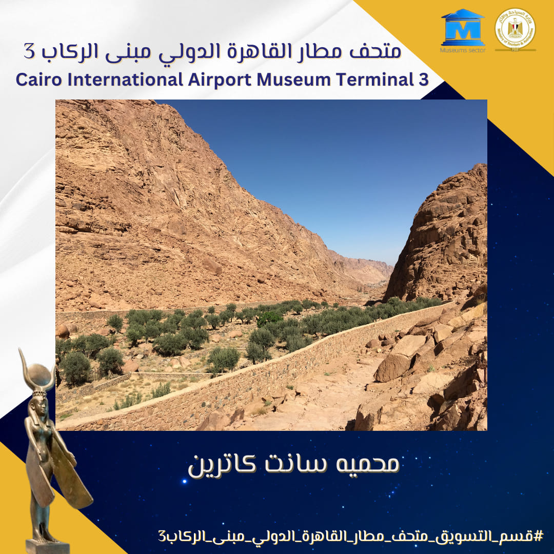 ألقت إدارة متحف آثار مطار القاهرة الدولي، الضوء على محمية سانت كاترين بجنوب سيناء، وهي محمية طبيعية وثقافية تقع على هضبة مرتفعة في جنوب سيناء، تحيط بها جبال شاهقة وتبلغ مساحتها حوالي 4250 كم2.