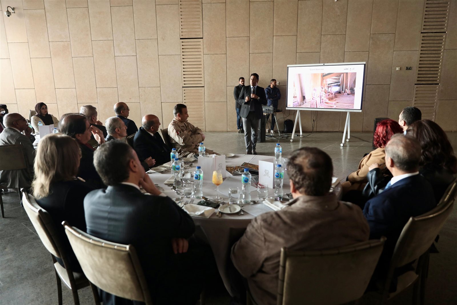 واستهل وزير السياحة والآثار الجولة بشرح عام للمتحف والأقسام التي تم البدء في التشغيل التجريبي لها ورسالة المتحف، والغرض الثقافي والسياحي والاقتصادي منه، والعوائد المالية المقدرة منه عند افتتاحه كاملا ليكون صرحًا ثقافيًا واقتصاديًا ومؤسسة علمية تعليمية عالمية.